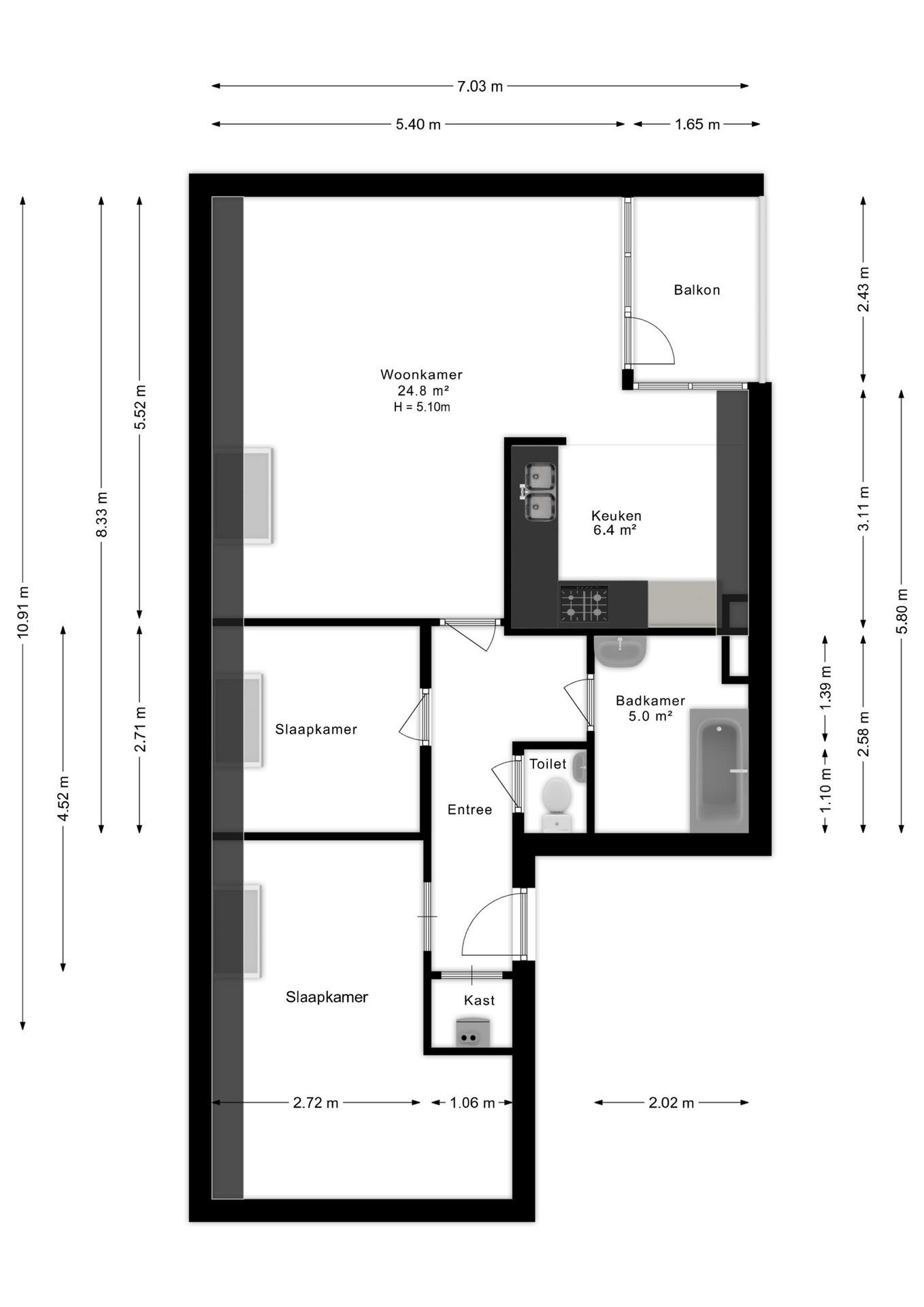 € 1.600/maand, min. 3 kamers