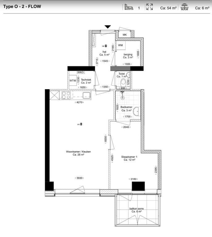 € 1.200/maand, min. 2 kamers