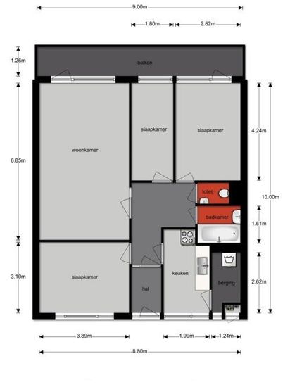 € 1.200/maand, min. 4 kamers
