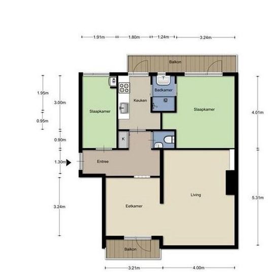 € 1.800/maand, min. 3 kamers