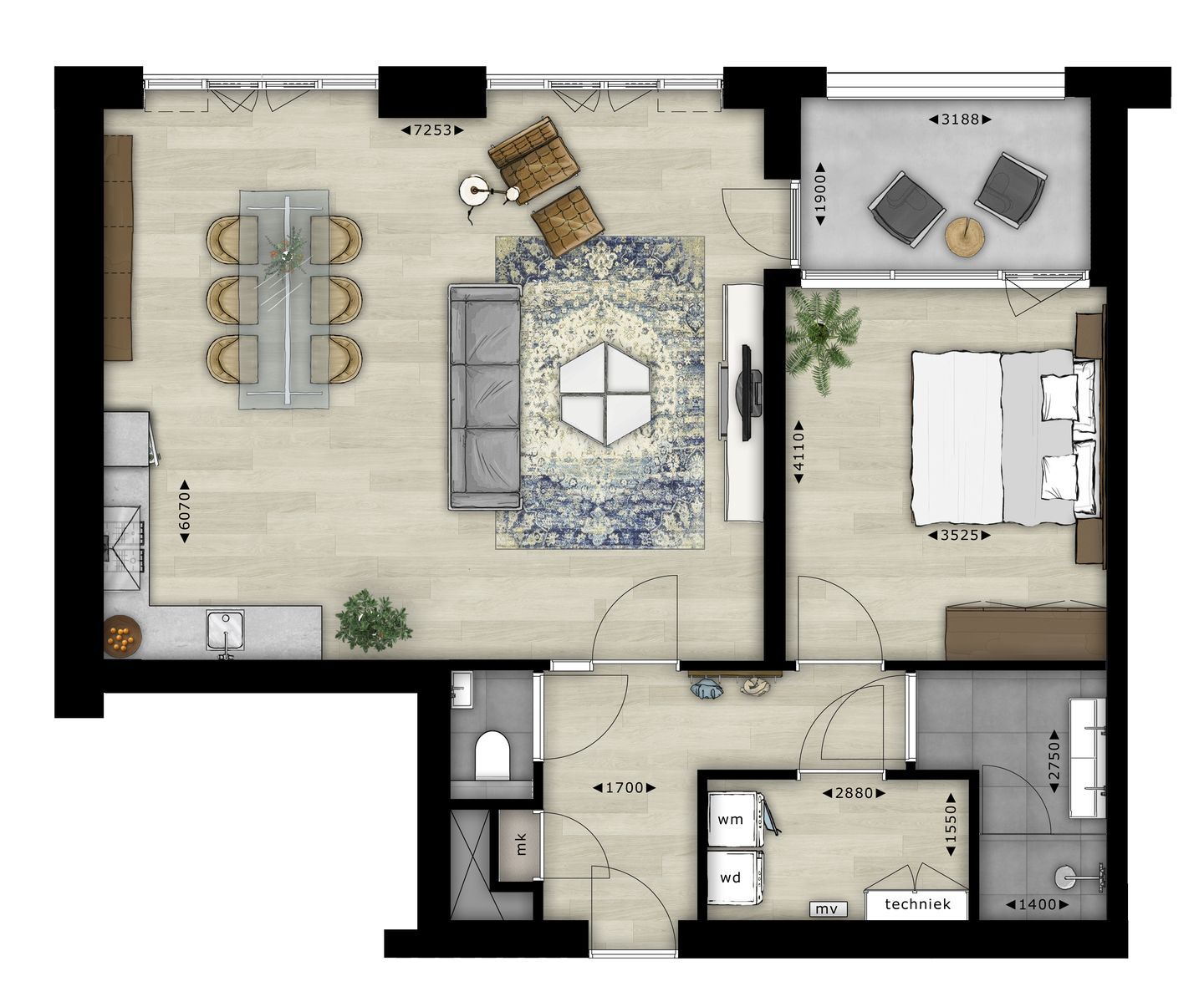 € 1.600/maand, min. 2 kamers