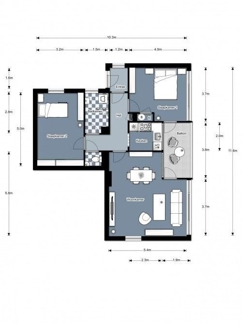 € 1,000/month, min. 2 bedrooms