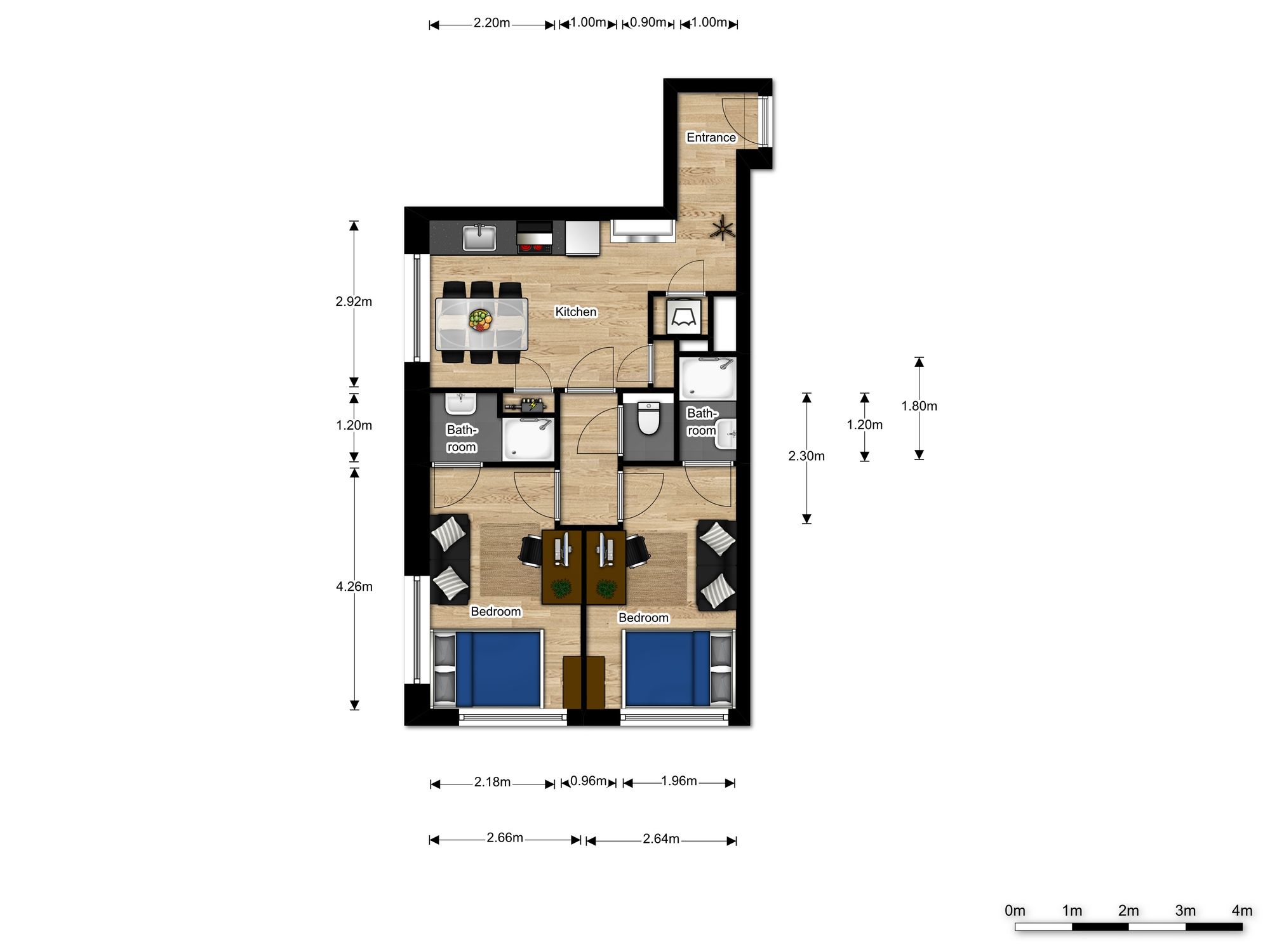 € 1,200/month, min. 2 bedrooms