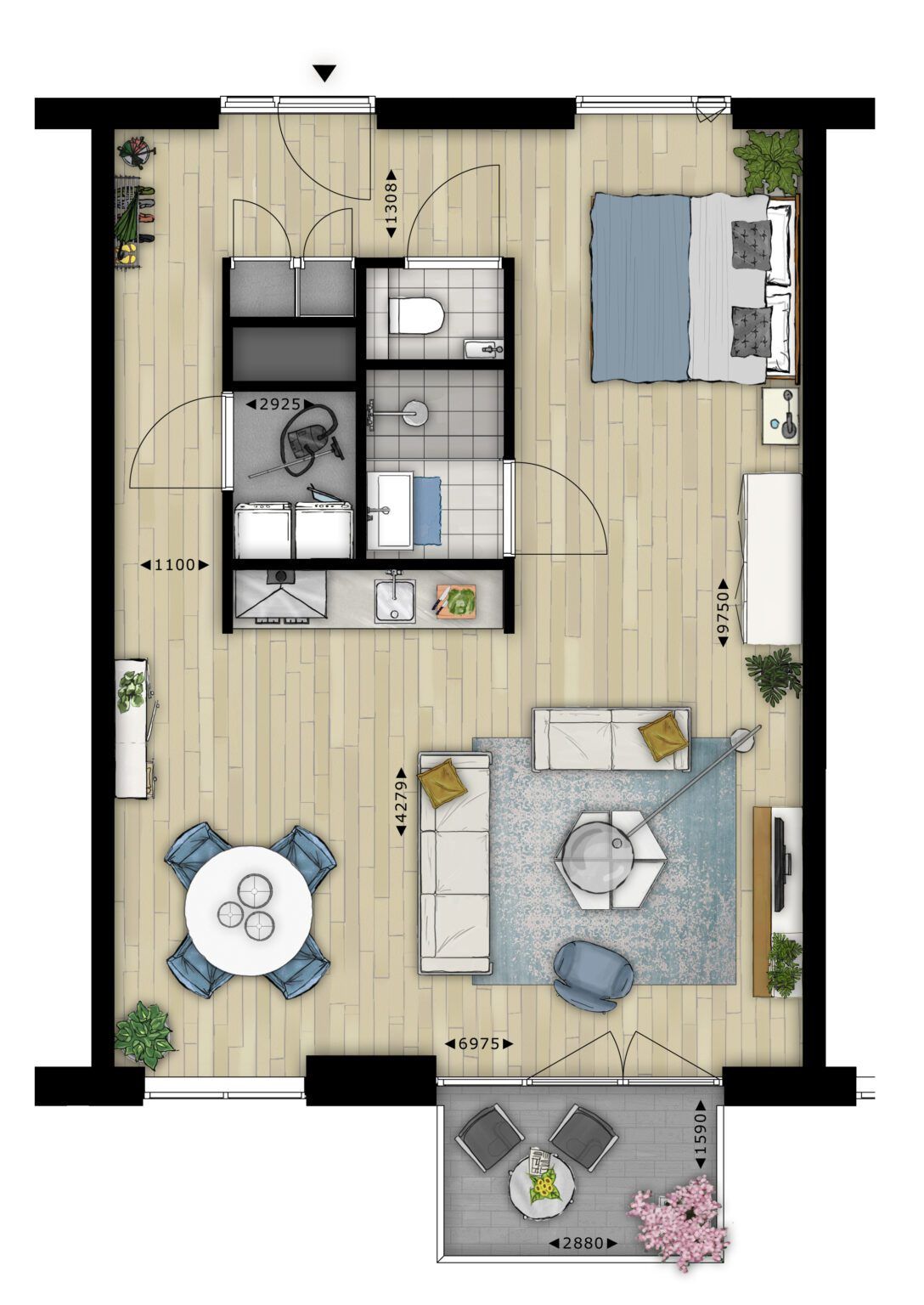 € 1,400/month, min. 1 bedroom