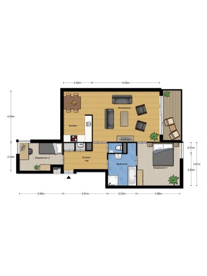 € 1,200/month, min. 2 bedrooms
