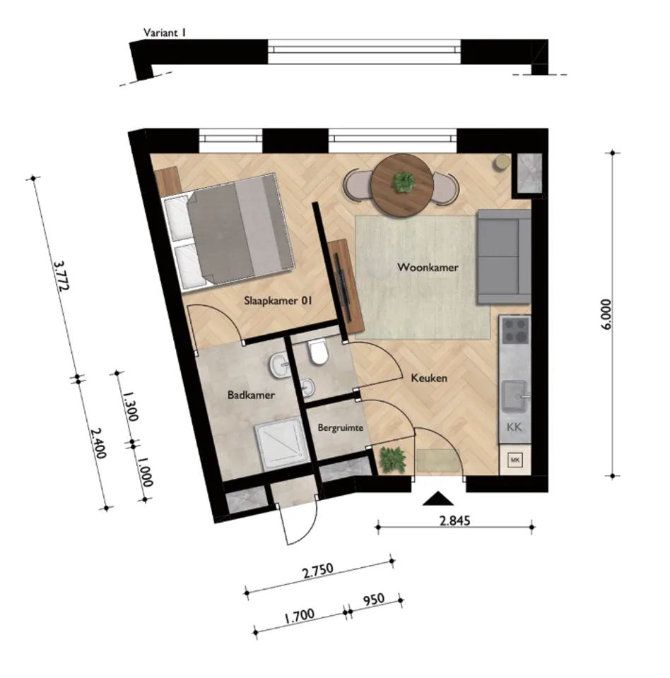 € 1,000/month, min. 1 bedroom