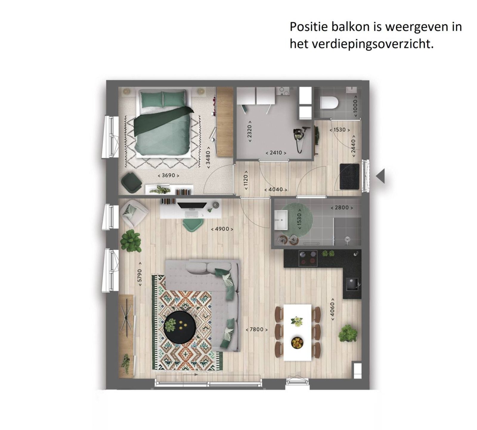 € 1,400/month, min. 2 bedrooms