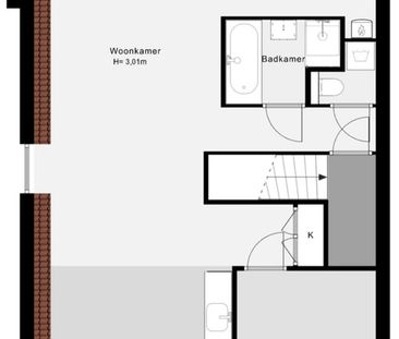 Dubbele bovenwoning met 3 kamers te huur. De woning is ge...