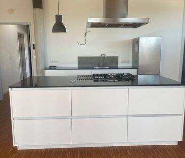 Moderne en lichte maisonnette met woonkamer met open inge...